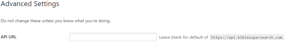 Now, change the API URL to: http://puredove.ca/path/to/biblesupersearch_api/public